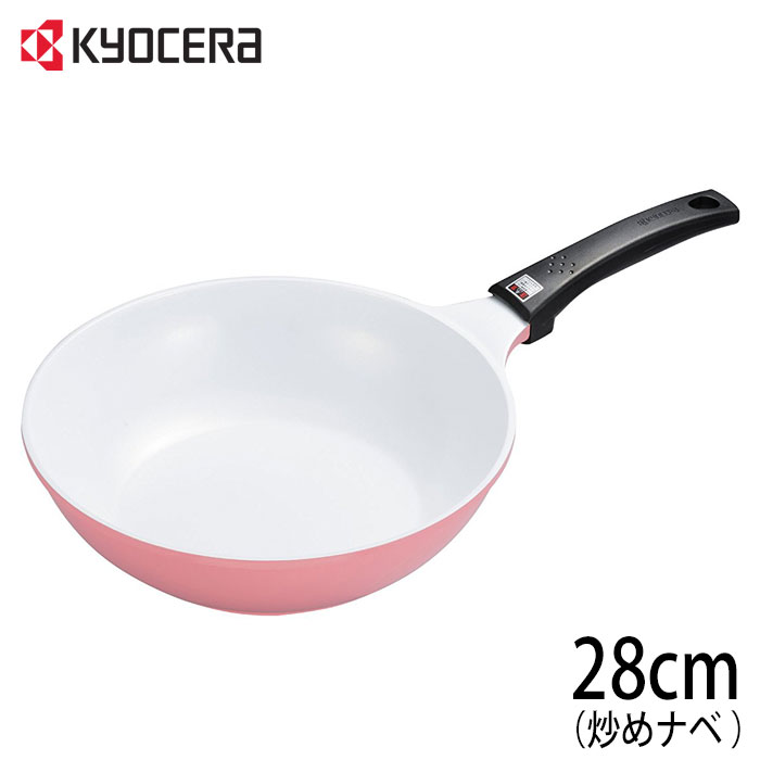 京セラ セラブリッド 炒め鍋28cm ガス火用 カラー:コーラルピンク ※IH調理器には使用できません